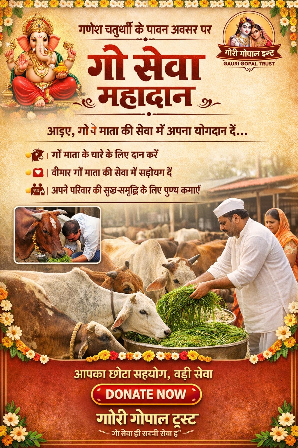 गौरी गोपाल ट्रस्ट आप सभी भक्तों से विनम्र निवेदन करता है कि इस शुभ दिन पर गौ सेवा का पुण्य अवश्य प्राप्त करें।
